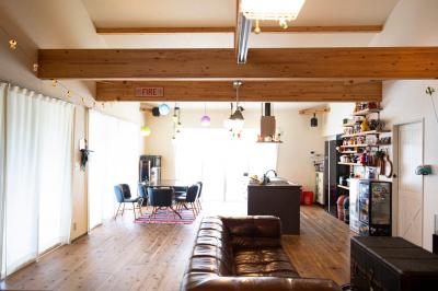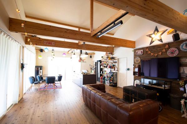 リビングに家族が集うビンテージ風の平屋