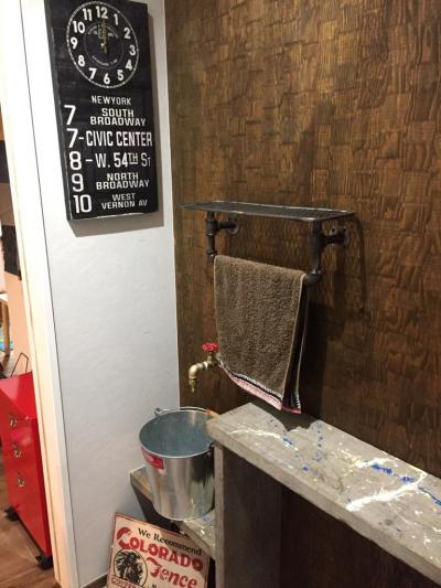 キッチンのアメリカンビンテージランプをはじめ、コーディネートスタッフが当社が運営する雑貨店のアイテムだけでなく、知り合いの古着店など巡り、オーダーと雰囲気に合う家具や雑貨を集めました。
