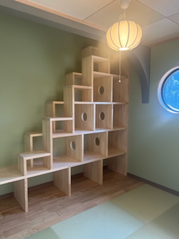 和室から収納も猫の遊び場も兼ねた造作階段。